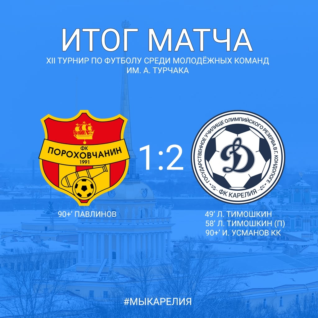Футбольная команда Училища олимпийского резерва «Динамо-Карелия» одерживает победу в первом матче предсезонного молодёжного турнира им. Анатолия Турчака